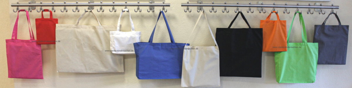 Eine riesige Auswahl an Baumwolltaschen in 14 (!) verschiedenen Größen und bis zu 28 (!) verschiedenen Farben lässt keine Wünsche offen, um die richtige Tasche für das Bemalen mit Stoffmalfarben zu finden.