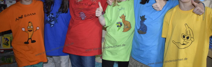 Mit etwas Mühe oder mit Hilfe von Erwachsenen, die schon ein Motiv vorzeichnen, können schon kleinere Kinder ein T-shirt selbst gestalten!